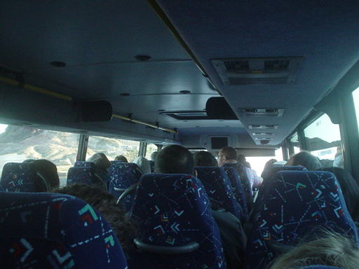 いよいよ出発です。私は進行方向向かって右側に座ったのですが、このように日光がもろに当たり、窓にはカーテンもついてなかったので、日焼けされたくない方は左側に座った方がよさそうです。同行の母もタオルで日光を避けるのに必死でした。私もですが(笑)。