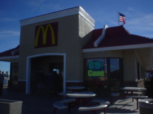 グランドキャニオンへは片道4時間以上かかりますが、行きと帰りの両方、途中マクドナルドに寄ってくれますので、そこで食べ物を買うことができます。バスの乗客が一斉に入るので、早めに入ることをおすすめします。