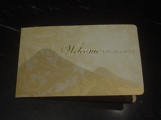部屋のカードキーです。日本で「いらっしゃいませ」と書かれていました。日本人の宿泊客が多いようです。私のように「高級ホテルは安いアジアで泊まる」と考えている人が多いのかもしれません(笑)。