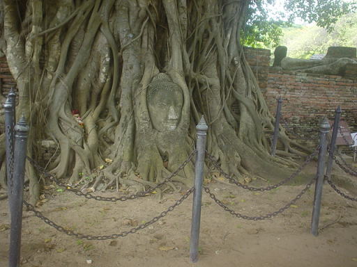 おそらく最も有名なのが、この木の根に包まれた仏像の頭部ではないでしょうか。
