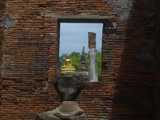 さらに奥に進んでいきます。ガイドさんが、歴史を一生懸命説明してくれたのですが、すべて忘れてしまいました。1つ覚えているのが、このアユタヤ遺跡は過去に攻撃されて、仏像の頭部などが破壊されたということです。