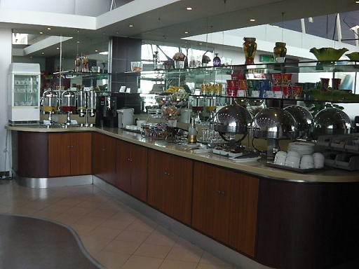 受付を正面にして、ラウンジは右と左の2つのエリアに分かれているようですが、私は軽食ビュッフェコーナーがある左側に向かいました。