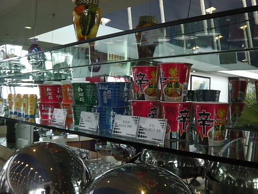 カップラーメンです。大韓航空ラウンジとしても使用されているため、韓国の辛ラーメンもありました。
