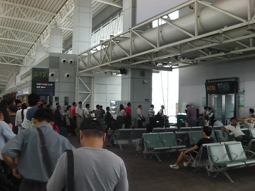 ゲートでは既に搭乗手続きが開始されていました。この長い列はエコノミークラス用ですが、今回私はビジネスクラス利用だったので、誰も並んでいないビジネスクラス用のほうから、すぐに搭乗することができました。