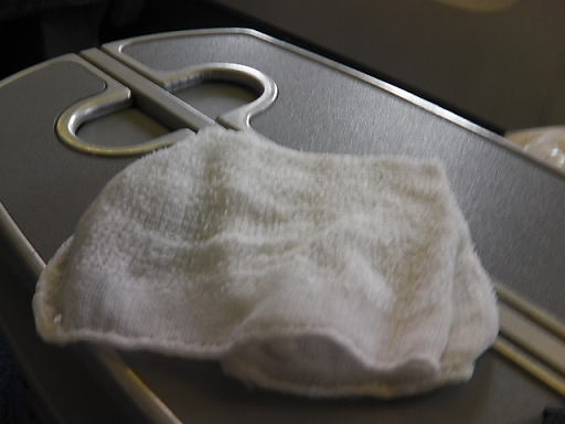 席に着くと、すぐにおしぼりを持ってきてくれました。20代前半のかなり若い女性乗務員でしたが、笑顔がまったくなく、残念な気持ちでフライトがスタートしました。