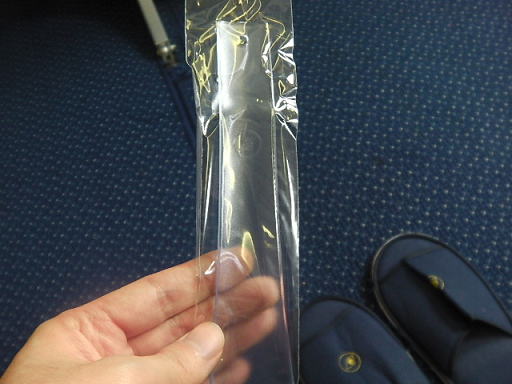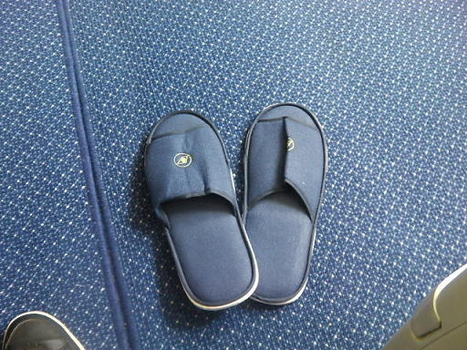 スリッパは、わざわざ袋から出して、床に置いてくれました。これぐらい自分でもできますが、してくれると気持ちがいいものです。「おもてなし」の日本の航空会社がしてくれないのが不思議です。