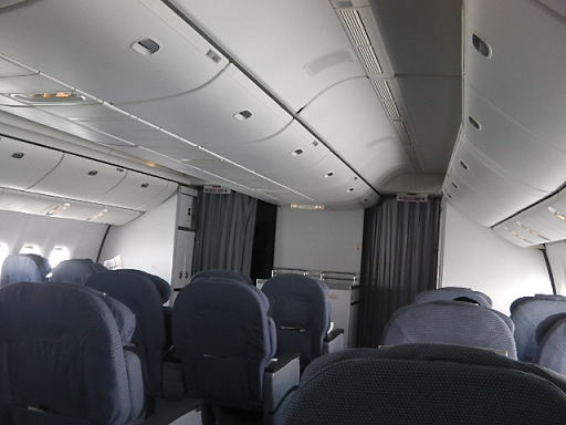 ビジネスクラス全体の様子です。横の配列は2列〜2列〜2列でした。ビジネスクラスの乗客は、私を含めて3人しかいませんでした。