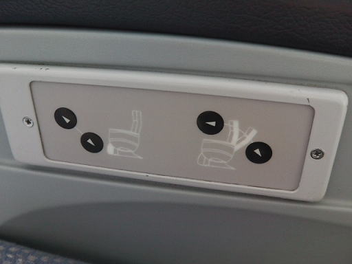 シートのリクライニング用ボタンです。背もたれ用、フットレスト用と、2つのボタンしかないシンプルなつくりでした。ご年配の方にはこのようなボタンのほうがいいのかもしれません。シンプルイズベストとは、このようなことを言うのでしょうか。