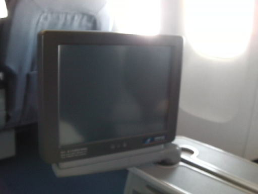 パーソナルモニターです。前のシートの背面にあるタイプではなく、下から引き上げるタイプでした。エコノミークラスの一番前の列のような感じです。