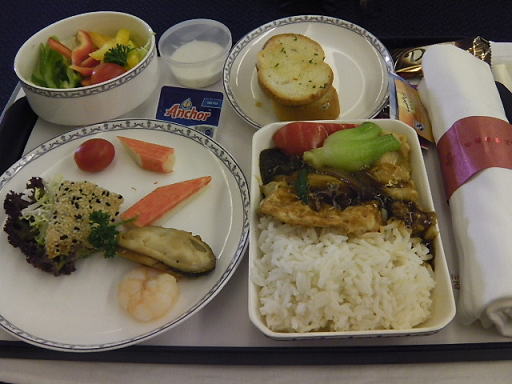 初めて利用した、中国南方航空・ビジネスクラス(機種はボーイング777)の機内食の評価ですが、星5つ中、星3個にしたいと思います。