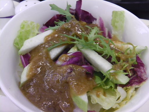 前菜のサラダには、「チャイナエアライン特製ガーリックドレッシング」をかけました。このガーリックドレッシング、とてもおいしかったです。