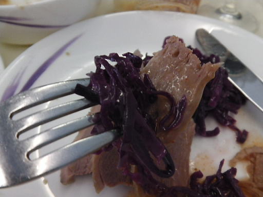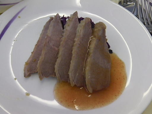 特製ソースと赤キャベツ煮と共に、鴨肉をいただきました。