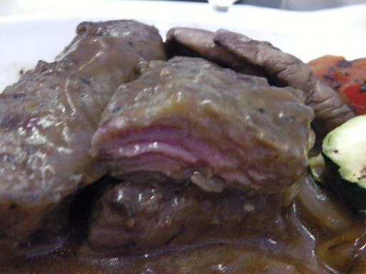 メインディッシュのステーキも、ボリュームもあり、味もおいしく、ビジネスクラスの機内食らしい味でした。