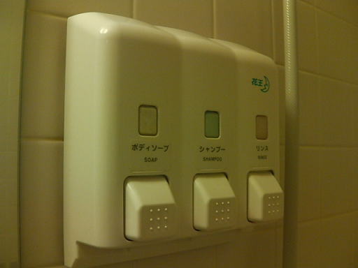 ボディソープ、シャンプー、リンスの3つがありました。入れ物には「花王」と書かれていました。
