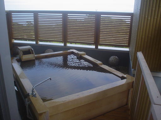 遠くに海を眺めながらゆったりお湯に浸かることができます。