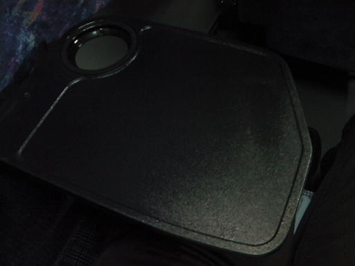 アームレストからは、このような小さなテーブルも引き出せました。ちょっと飲み食いをする時には便利です。