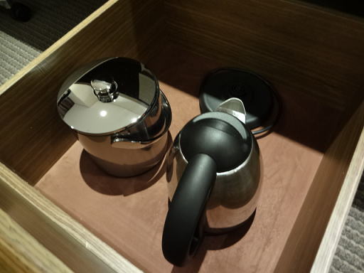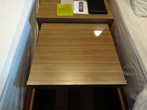 ベッドの間にあるテーブルは、このように引き出せるタイプなので、そこに飲み物などを置くことができます。