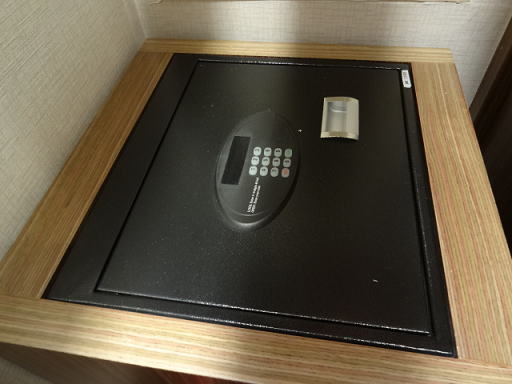 金庫です。サイズは大きめで、モバイルサイズのノートパソコンも収納できます。