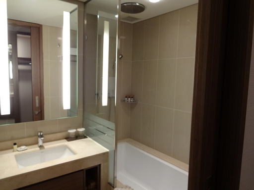 浴室です。今回泊まったスタンダードツインでは、浴槽は別になっていませんでした。シャワーは真上の天井から浴びるタイプで気持ち良かったです。