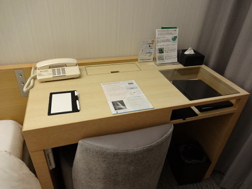 コンセントやLANケーブルは机の中に収納されていました。京王プラザホテル札幌のようなシティホテルにある机みたいです。