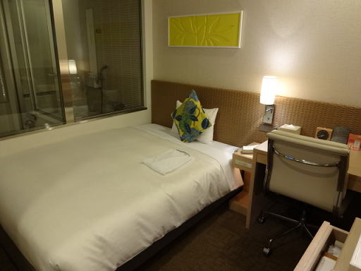浴室はガラス張りになっていて、部屋から中が見えるようになっています。これもリゾートホテルさを意識したつくりかもしれません。ブラインドで隠すこともできます。
