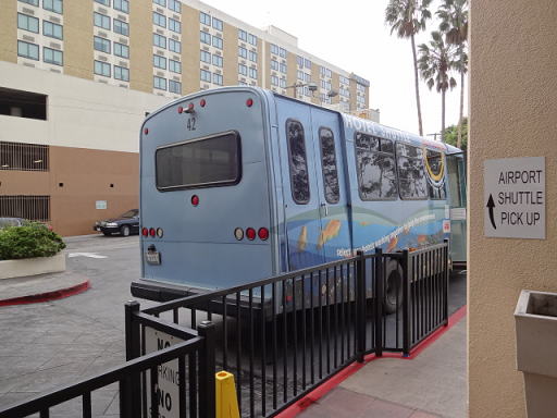 無事ロサンゼルス空港に到着しました。これから、滞在先のホテルであるホリデイイン・ロサンゼルスエアポートに向かいます。ホテルへは無料のシャトルバスで向かいます。
